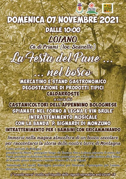 Domenica 7 novembre 2021, dalle ore 10:00, a Ca' di Priami (loc. Scanello) si terrà la tradizionale festa del pane...nel bosco.
