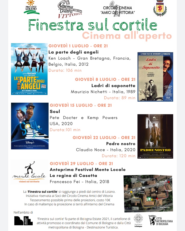 Tutti i giovedì di luglio e agosto appuntamento con la rassegna Finestra sul cortile, per il cinema all'aperto nell'arena estiva del Cinema Vittoria.