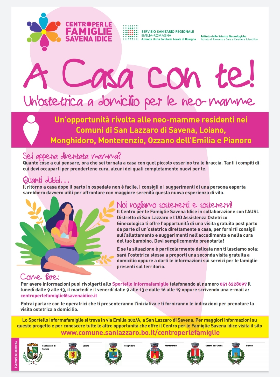 L' iniziativa è rivolta alle neo-mamme residenti nei Comuni di Loiano, San Lazzaro di Savena, Monghidoro, Monterenzio, Ozzano dell’Emilia e Pianoro.