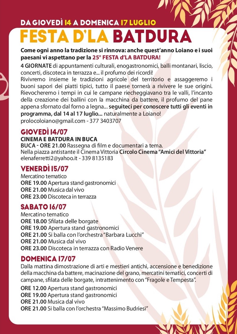 Dal 14 al 17 luglio 2022 si terrà la 25° edizione della tradizionale Festa d'la Batdura.