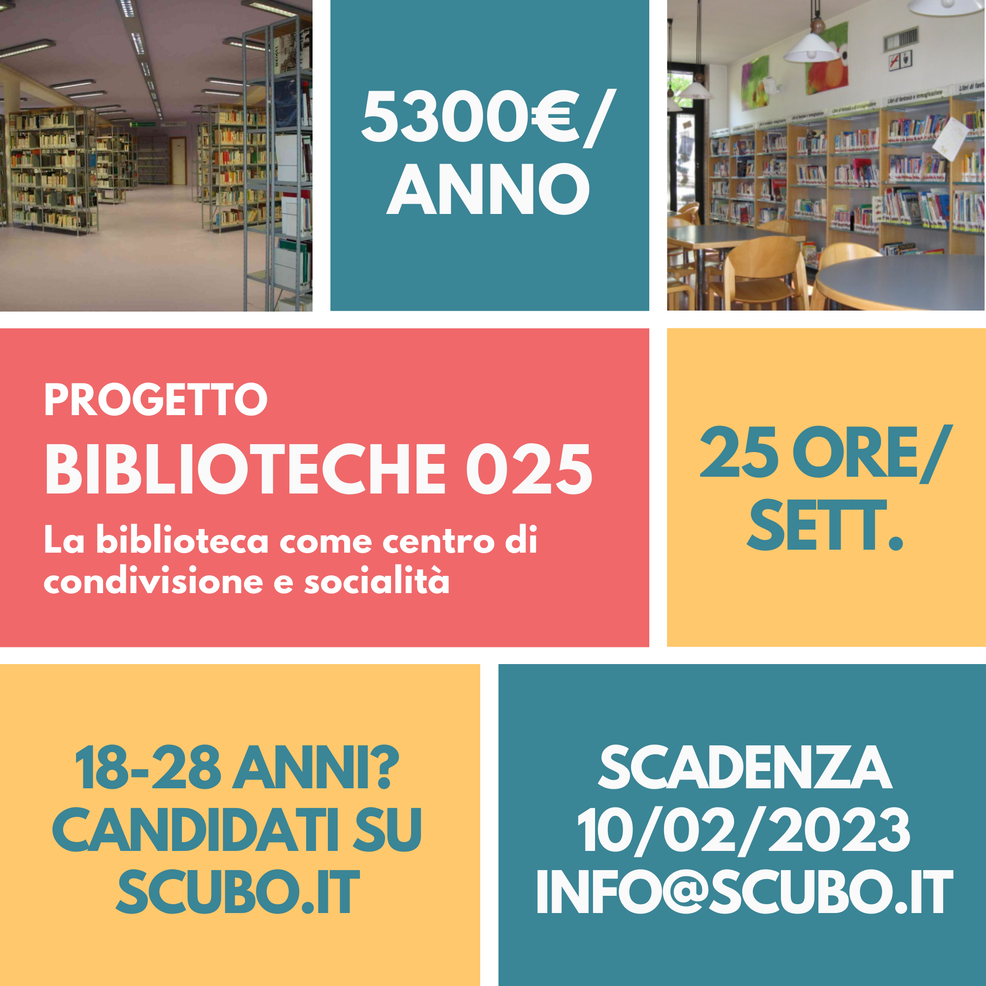 È attivo il progetto Biblioteca 025 - La biblioteca come centro di condivisione e socialità, organizzato dall'associazione di enti SCUBO, all'interno del bando di Servizio Civile Universale.