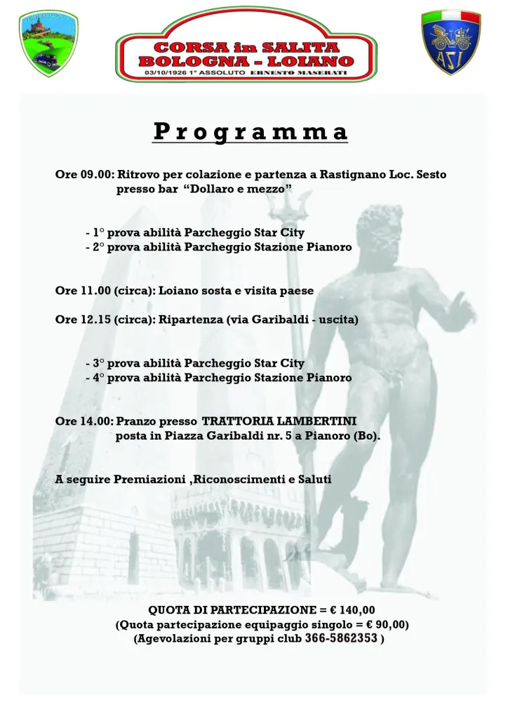 Domenica 24 settembre 2023 si terrà la 7° edizione della Rievocazione Storica della corsa in salita Bologna - Loiano.