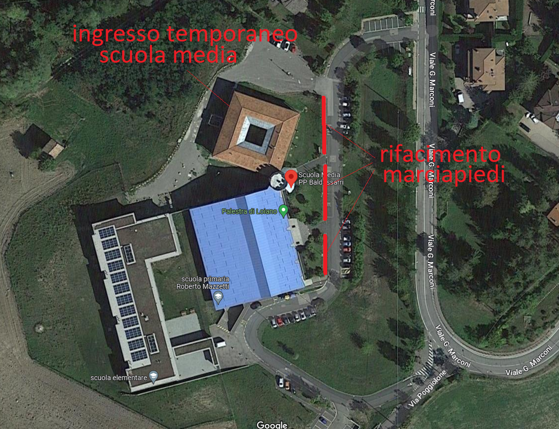 L'accesso degli studenti della scuola primaria di secondo grado, durante le lavorazioni, avverrà dal lato opposto del fabbricato (lato parcheggio).
