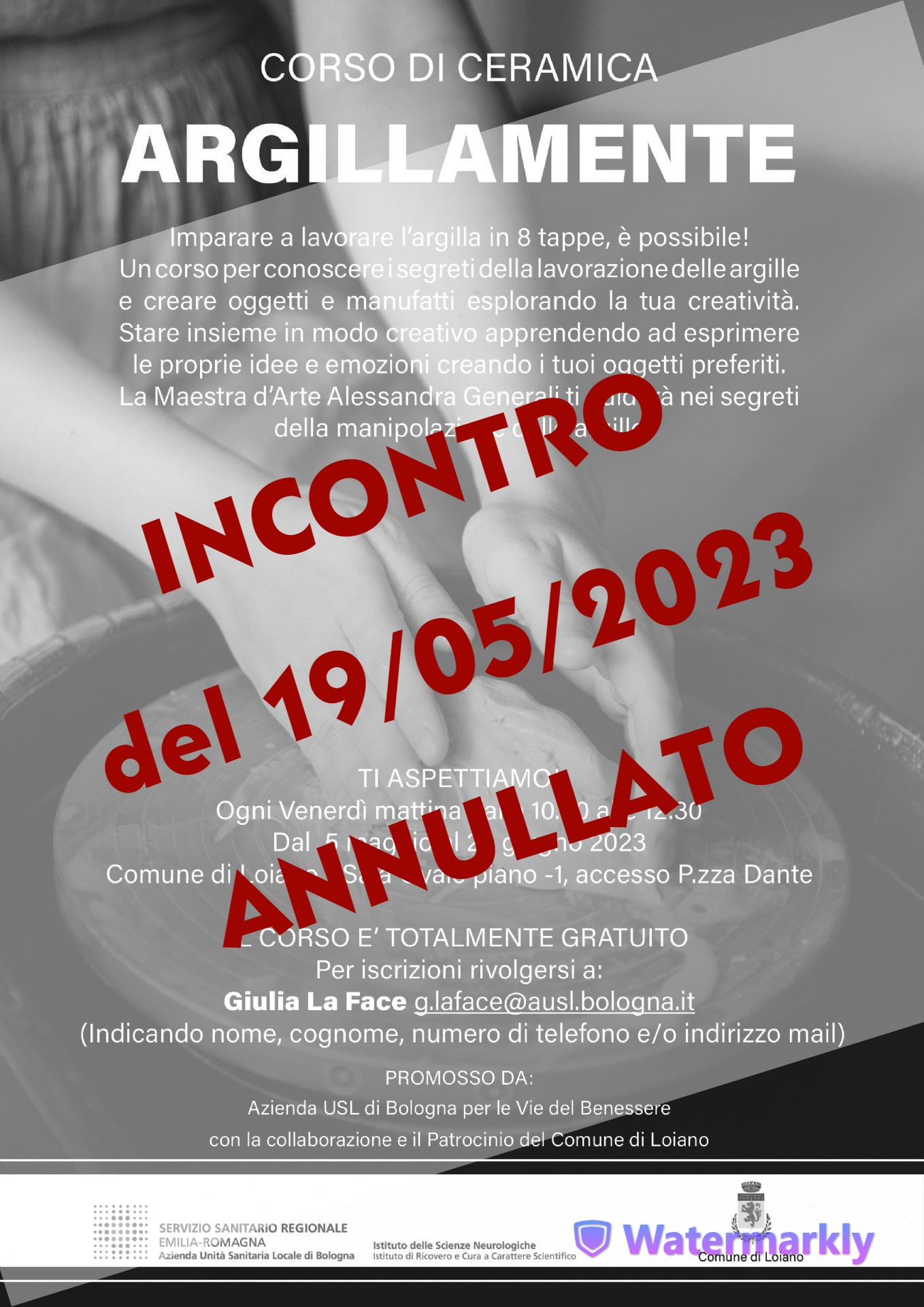 - il secondo incontro di Argillamente, il corso gratuito per imparare a lavorare l'argilla, inizialmente programmato per venerdì 19/05/2023, dalle ore 10:30, presso la sala ovale del comune di Loiano.