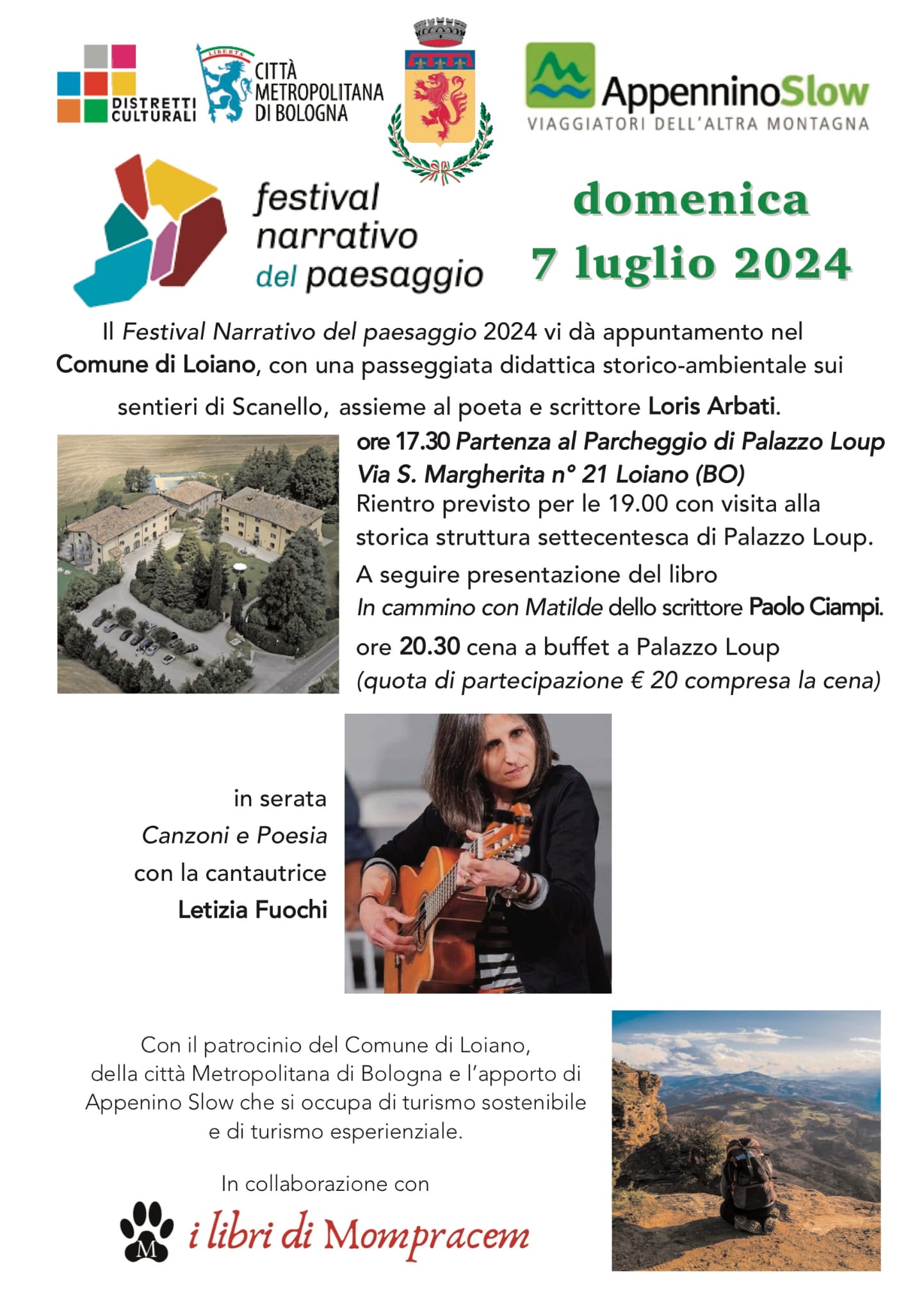 Domenica 7 luglio 2024, il Festival Narrativo del Paesaggio farà tappa a Loiano, con una passeggiata didattica storico-ambientale sui sentieri di Scanello (presso la frazione di Quinzano), a partire dalle ore 17:30.