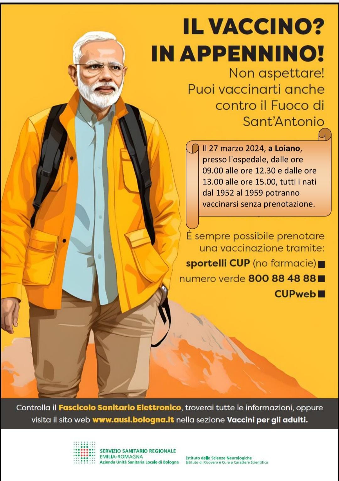 Mercoledì 27 marzo 2024, tutti i nati tra il 1952 e il 1959 potranno vaccinarsi senza prenotazione anche presso l'Ospedale Simiani di Loiano, dalle ore 9:00 alle ore 12:30 e dalle ore 13:00 alle ore 15:00.