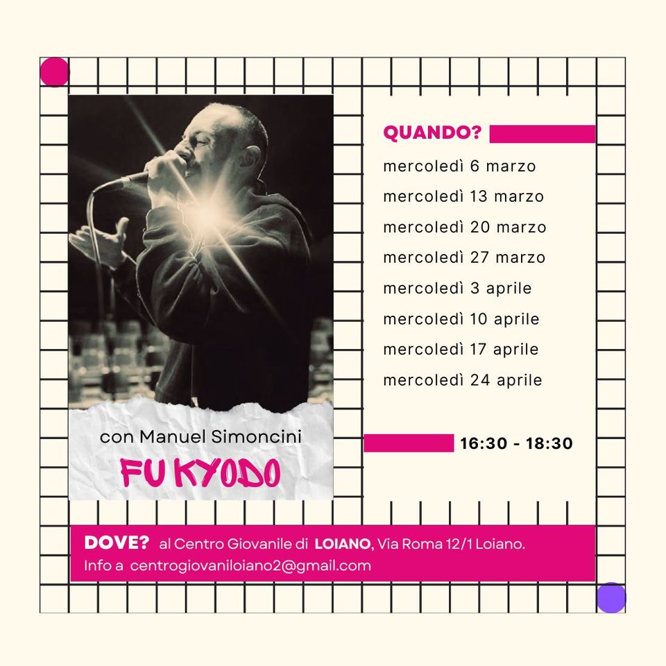 Mercoledì 6 marzo 2024, presso il Centro Giovanile di Loiano, prenderà avvio il laboratorio gratuito di scrittura creativa rap "Tieni il tempo", realizzato a cura di Manuel Fu Kyodo.