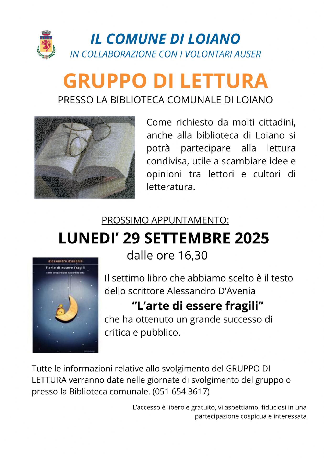 Lunedì 29 settembre 2025, dalle ore 16:30, presso la Biblioteca Comunale di Loiano (Via Roma n. 55), si terrà il nuovo appuntamento del Gruppo di lettura, grazie a cui sarà possibile partecipare a uno scambio di idee e opinioni in merito al libro prescelto, insieme ad altri lettori.
