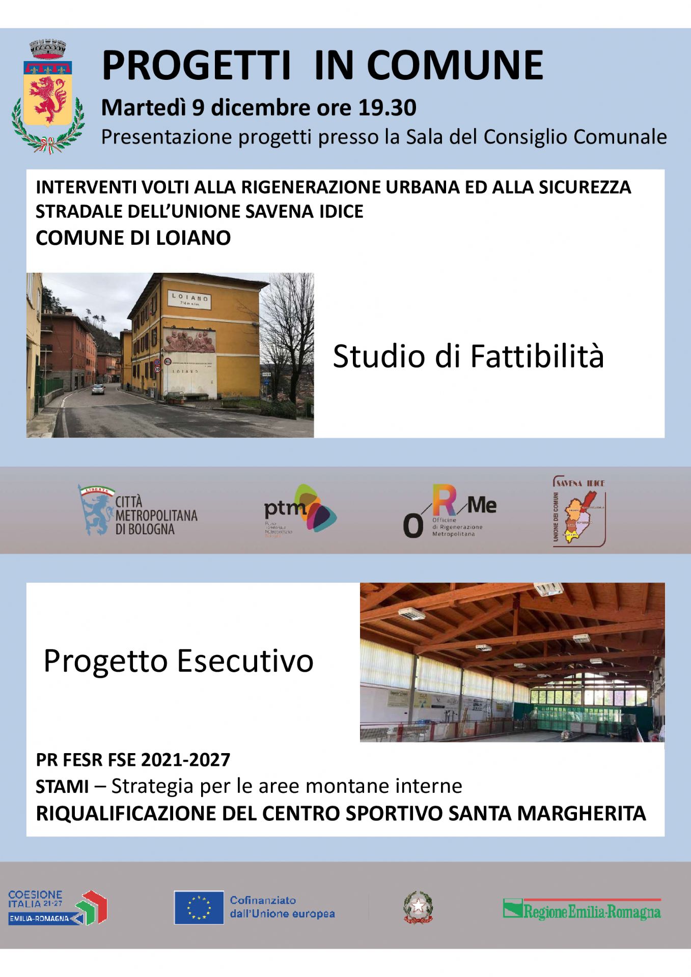 Martedì 9 dicembre 2025, dalle ore 19:30, presso la Sala del Consiglio del Municipio (Via Roma n. 55), si terrà l'incontro "Progetti in Comune".