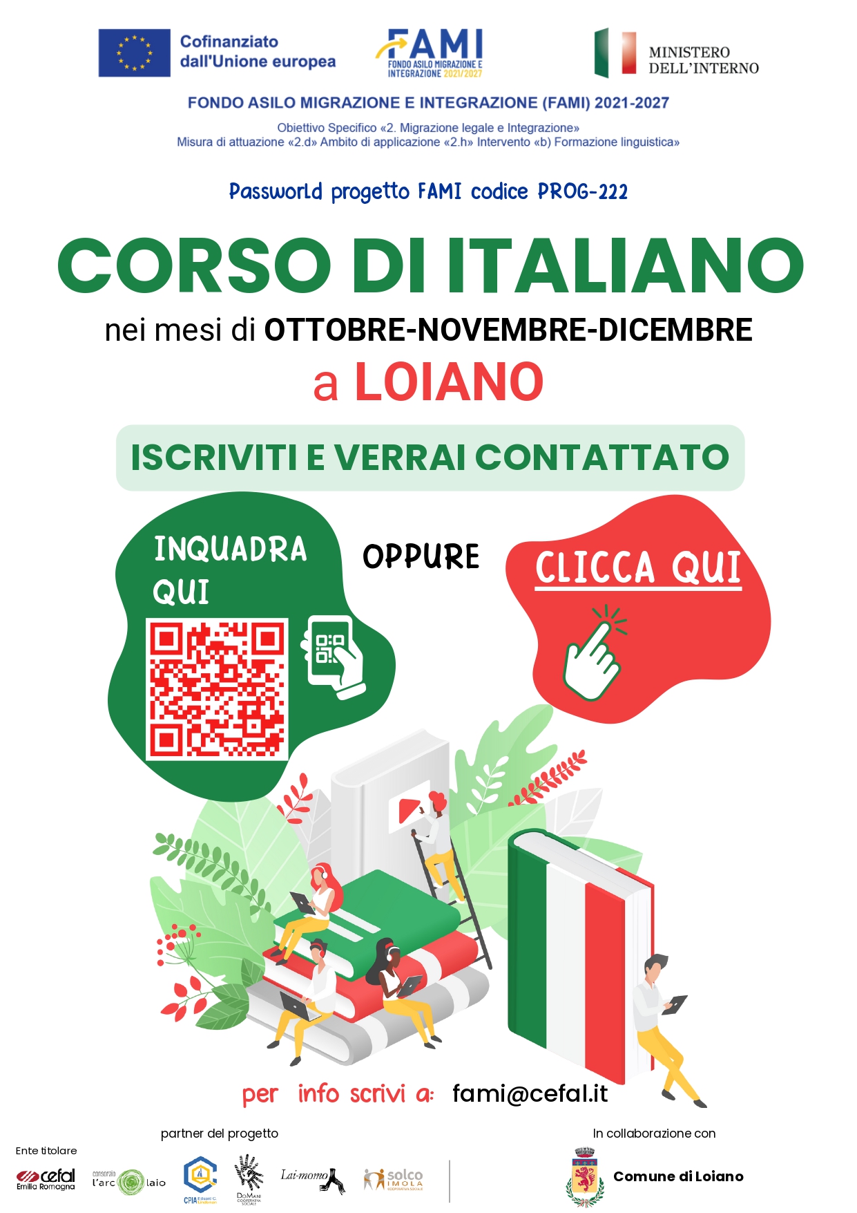 Nel corso dei mesi di ottobre, novembre e dicembre 2025 è in programma la realizzazione di un corso di italiano per stranieri a Loiano.