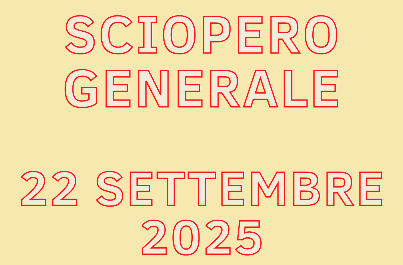 È stato indetto da alcune organizzazioni sindacali uno sciopero generale su tutto il territorio nazionale, valido per l'intera giornata per tutte le categorie pubbliche e private, per il giorno di lunedì 22 settembre 2025.