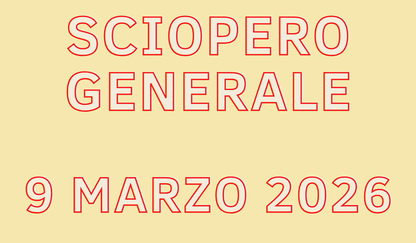 È stato indetto da alcune organizzazioni sindacali uno sciopero generale su tutto il territorio nazionale, valido per l'intera giornata per tutte le categorie pubbliche e private, per il giorno di lunedì 9 marzo 2026.