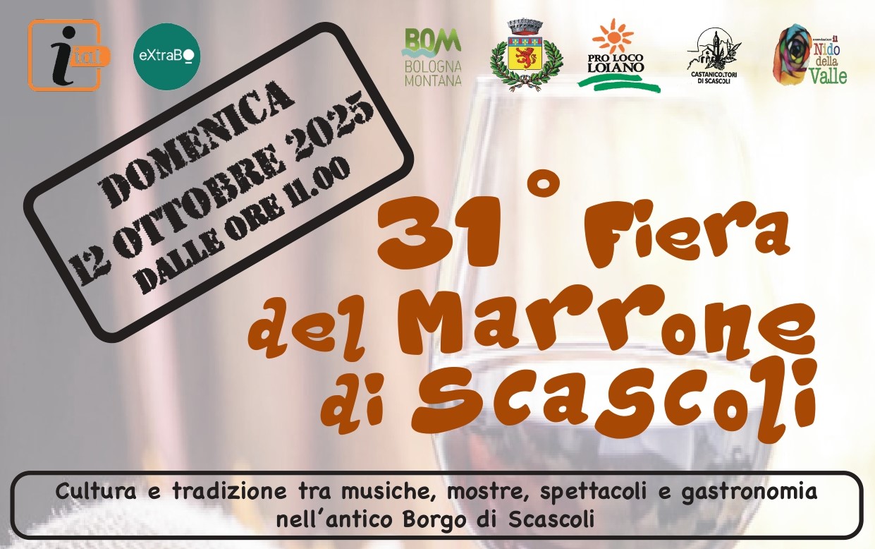 Domenica 12 ottobre 2025, a partire dalle ore 11 del mattino, avrà luogo la 31° edizione della Fiera del Marrone di Scascoli.