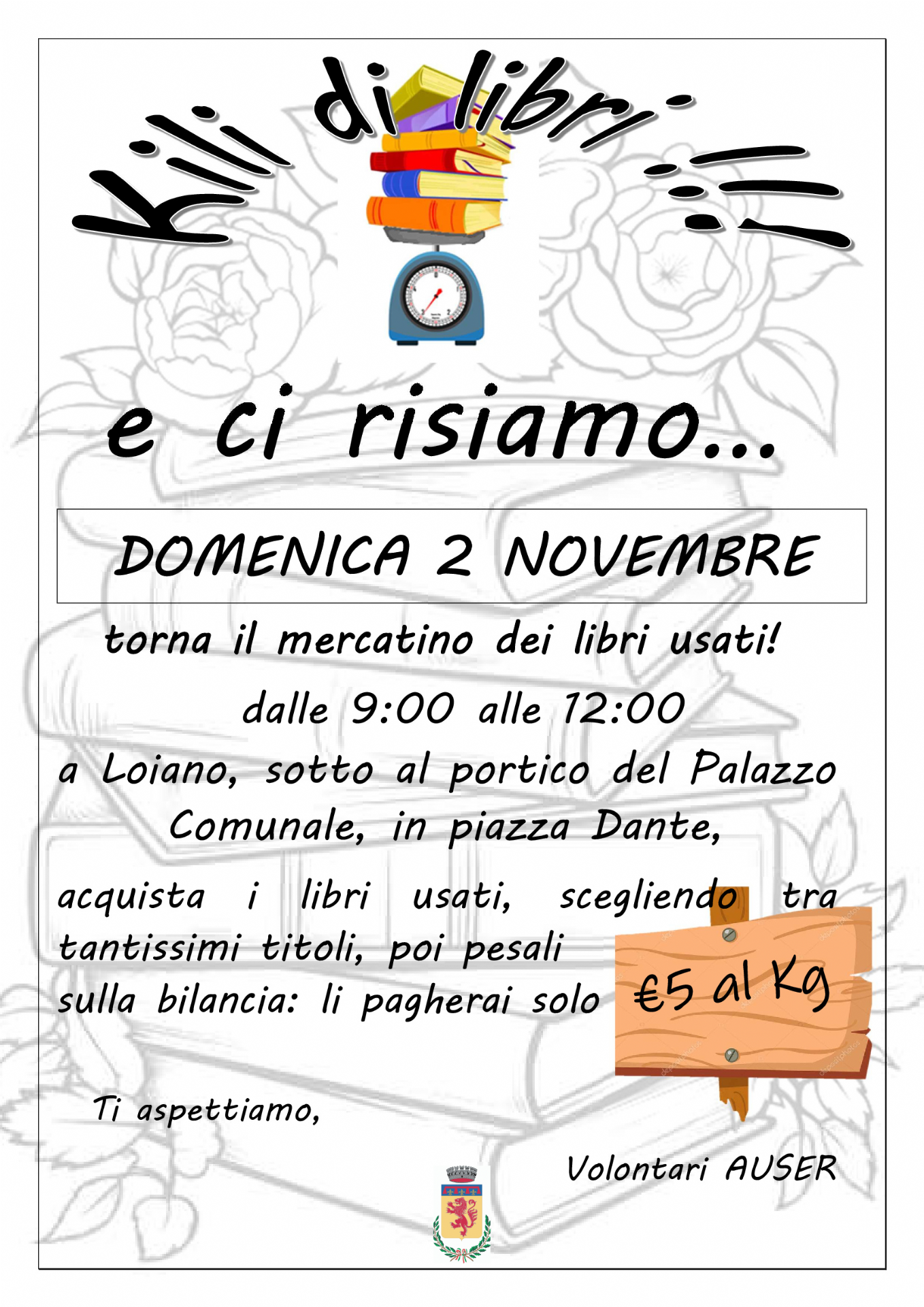 Domenica 2 novembre 2025, dalle ore 9 alle ore 12, sotto il portico del Municipio (lato Piazza Dante Alighieri) si terrà l'iniziativa "Kili di libri", a cura dei volontari AUSER.