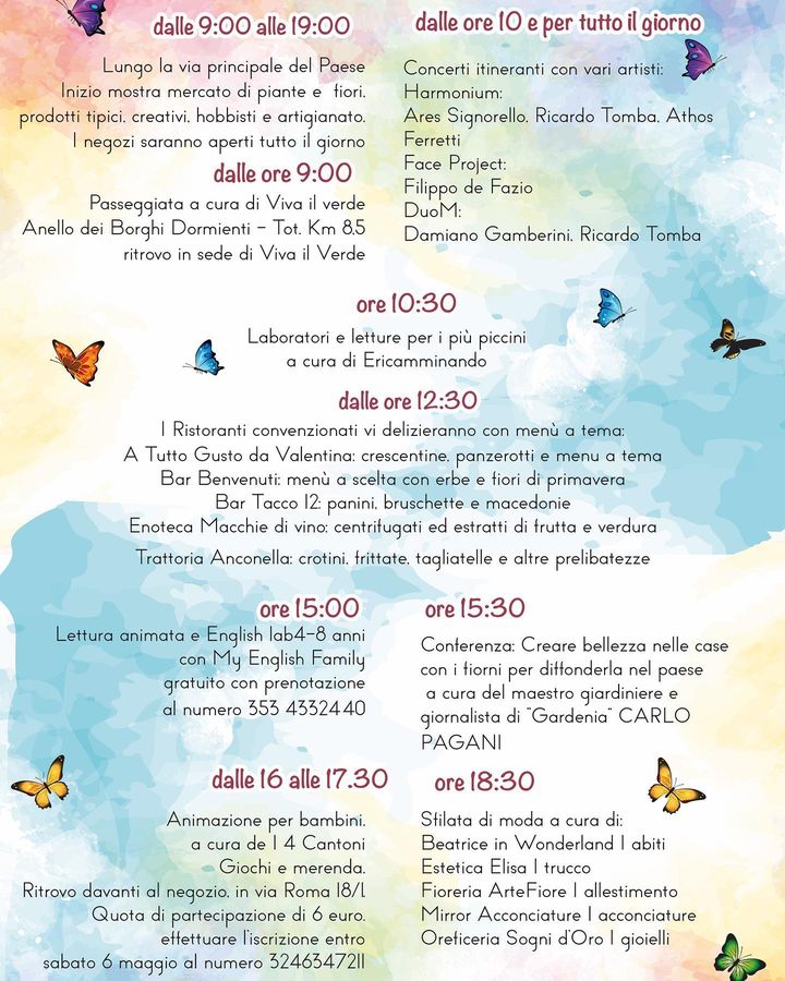 Il programma prevede una grande mostra mercato di fiori, prodotti tipici e creativi, intrattenimento per grandi e piccini e menu a tema presso i ristoranti convenzionati.
