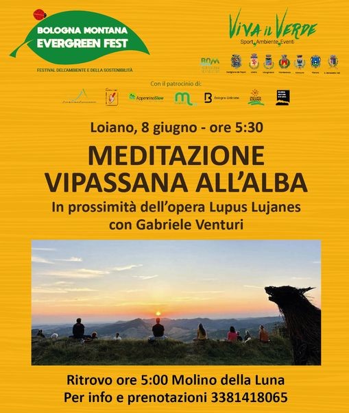 Sabato 8 giugno 2024, alle ore 5:30, in prossimità dell'opera di land art permanente Lupus Lujanes, si terrà una seduta di meditazione vipassana all'alba.
