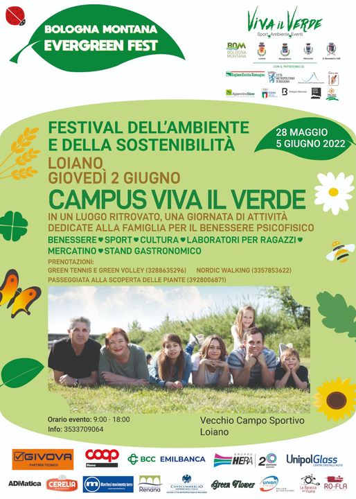 Giovedì 2 giugno 2022, dalle ore 9 del mattino alle ore 18, nell'ambito delle iniziative legate al Bologna Montana Evergreen Fest, il festival dell'ambiente e della sostenibilità, si terrà il Campus Viva il Verde.