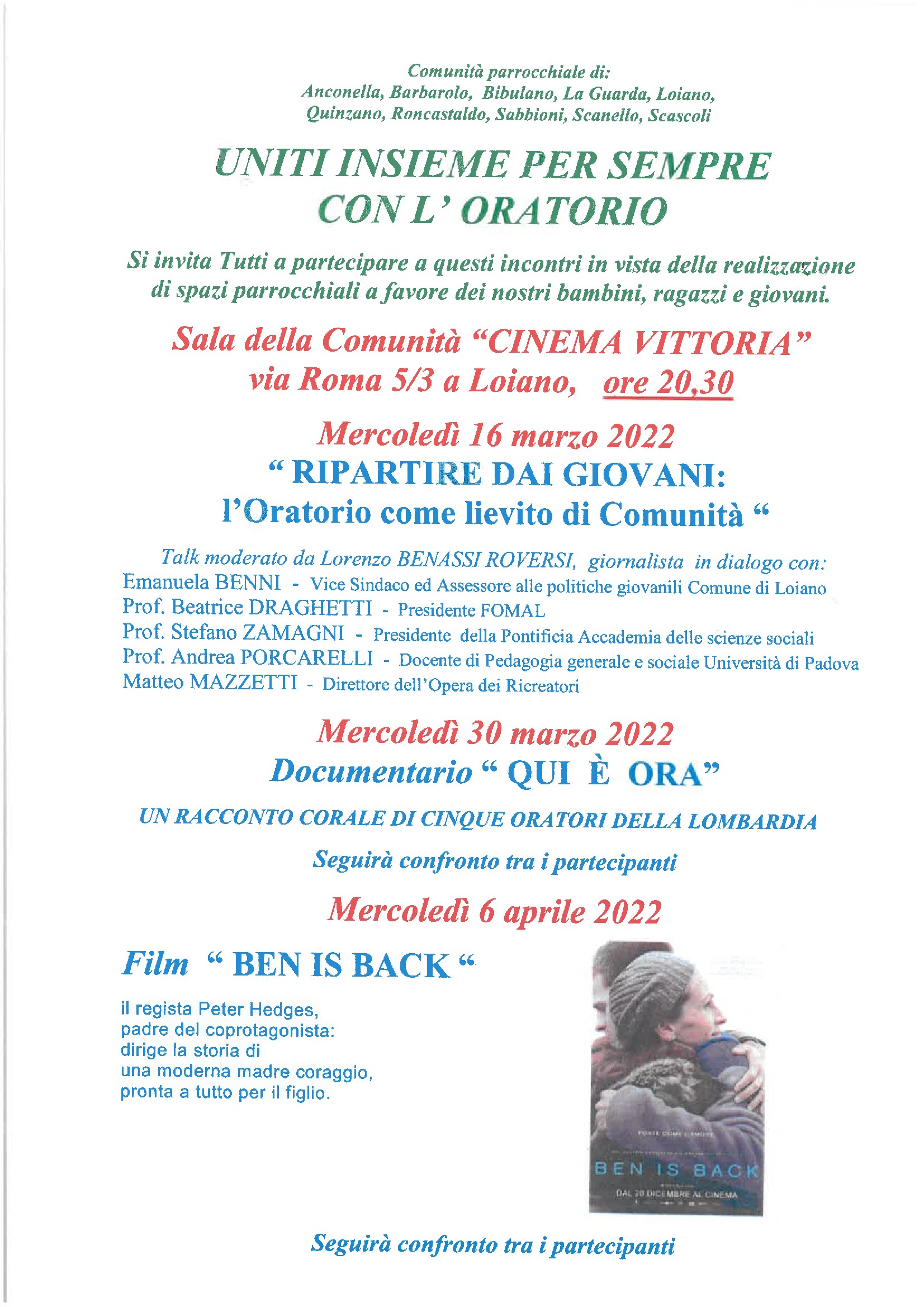 La comunità parrocchiale di Loiano e delle sue frazioni ha organizzato il ciclo di incontri "Uniti insieme per sempre con l'Oratorio".