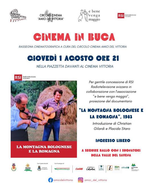 Giovedì 1° agosto 2024, alle ore 21:00, presso la piazzetta antistante il Cinema Vittoria, si terrà la proiezione gratuita del documentario "La montagna bolognese e la Romagna", 1983.