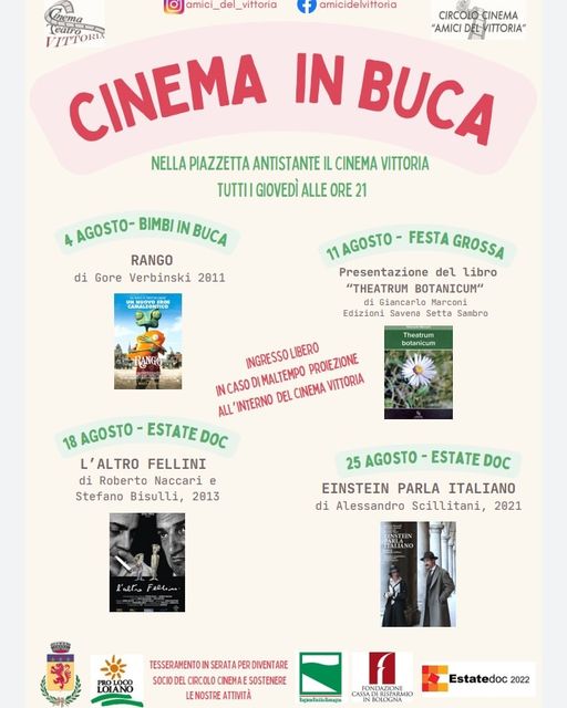 Tutti i giovedì di luglio e agosto, dalle 21, appuntamento con la rassegna Cinema in Buca, il cinema all'aperto nell'arena estiva del Cinema Vittoria.