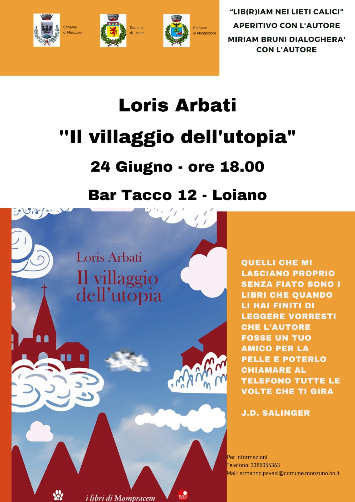 Sabato 24 giugno 2023, alle ore 18, presso il bar Tacco 12 si terrà la presentazione del libro "Il villaggio dell'utopia" di Loris Arbati.