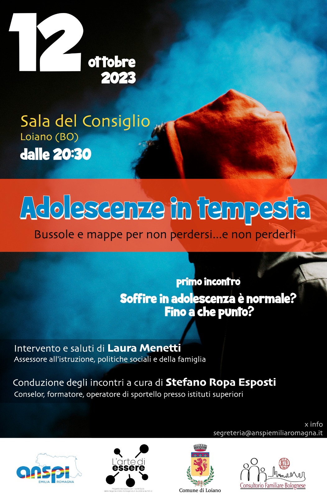 Giovedì 12 ottobre 2023, dalle ore 20:30, presso la Sala del Consiglio del Comune di Loiano, è programmata l'iniziativa "Soffrire in adolescenza è normale? Fino a che punto?".