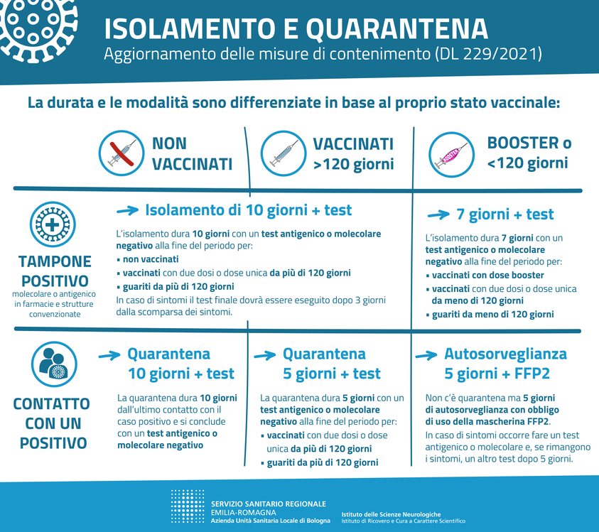 Durata e modalità di isolamento e quarantena differiscono a seconda dello stato vaccinale del soggetto interessato.
