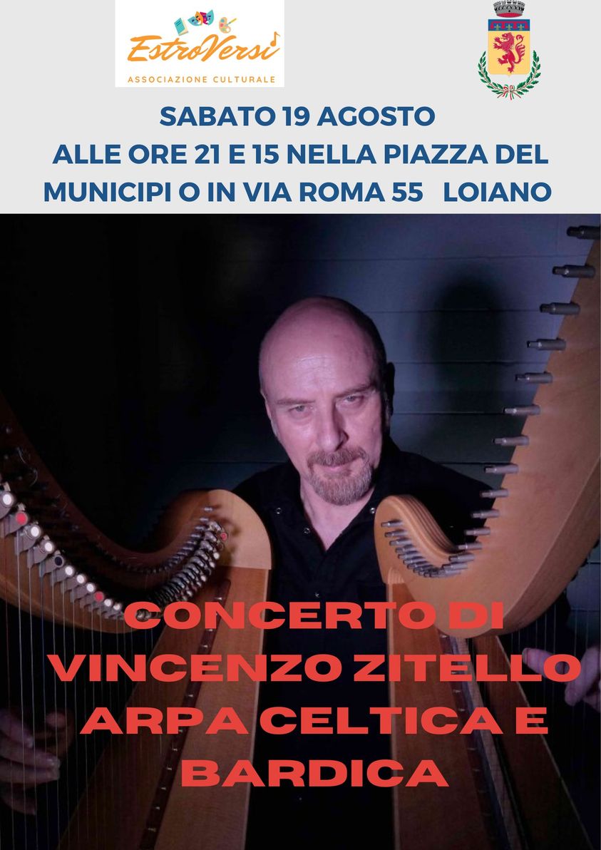Sabato 19 agosto 2023, alle ore 21:15, presso la Piazza del Municipio di Loiano (Via Roma n.55), si terrà il concerto gratuito per doppia arpa (arpa celtica e bardica) di Vincenzo Zitello, polistrumentista in grado di suonare due arpe contemporaneamente.