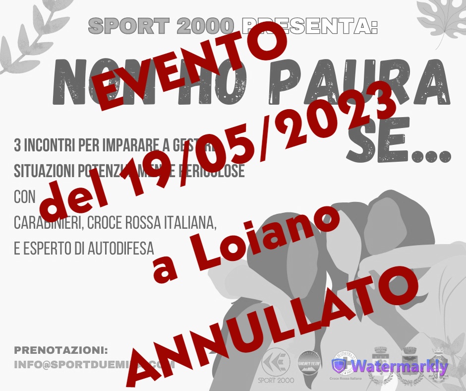 - il secondo appuntamento del progetto "Non ho paura se...", un dialogo teorico-pratico con le Istituzioni per imparare a gestire situazioni potenzialmente pericolose, inizialmente programmato per la giornata di venerdì 19/05/2023, alle ore 18, presso la Sala del Consiglio del Municipio di Loiano;