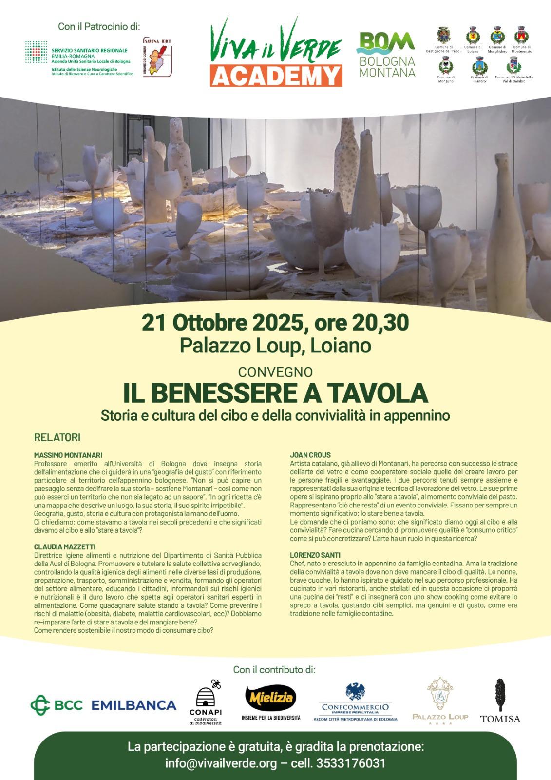 Martedì 21 ottobre 2025, dalle ore 20:30, a Palazzo Loup, si terrà il convegno "Il benessere a tavola. Storia e cultura del cibo e della convivialità in Appennino".