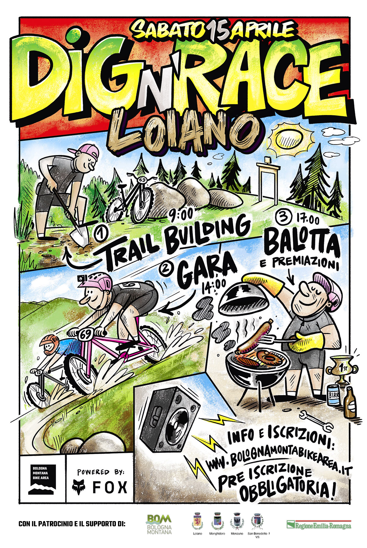 Sabato 15 aprile 2023, a partire dalle ore 9 del mattino, sul territorio di Loiano si terrà la prima edizione della manifestazione Dig n' Race, completamente dedicata alla bicicletta e all'attività all'aria aperta.
