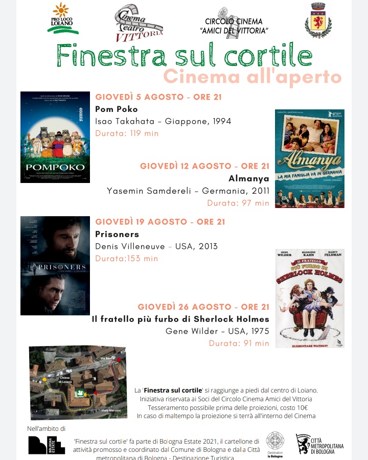Tutti i giovedì di luglio e agosto appuntamento con la rassegna Finestra sul cortile, per il cinema all'aperto nell'arena estiva del Cinema Vittoria.
