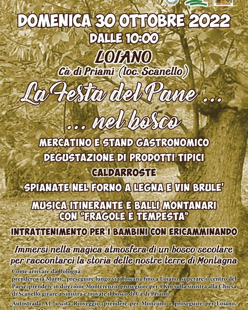 Domenica 30 ottobre 2022, dalle ore 10:00, a Ca' di Priami (loc. Scanello) si terrà la tradizionale Festa del Pane...nel bosco.